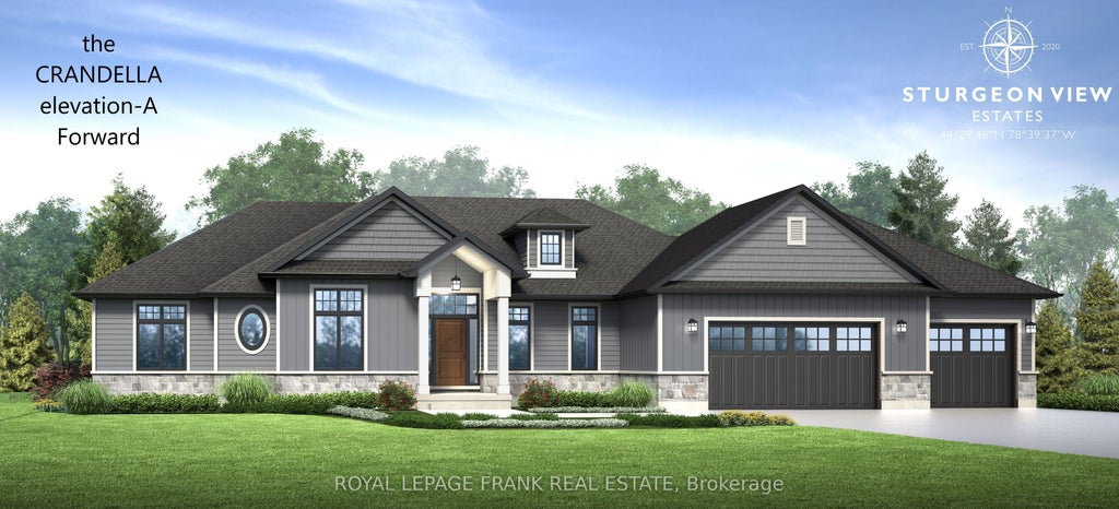 The Crandella 2151 sq.ft. Elevation A double car garage forward facing.. Visit Sturgeon View Estates, have your home built or purchase one of the last two Models standing and ready for occupancy. Models range from 1766sq.ft. to 2153 sq.ft. , walkout and split grade lots available all with the use of a private community 160ft. dock on Sturgeon Lk. Fibre Optics installed in subdivision. On site Super to give attention to detail and assist you with the building process. The block known as 27 Avalon is under POTL, with a monthly fee projected at $66.50, this is the shared waterfront ownership of Sturgeon Lake. Peace and Serenity are all here, just 1 1/2 hrs from GTA, 15 min. to Bobcaygeon and Fenelon Falls.